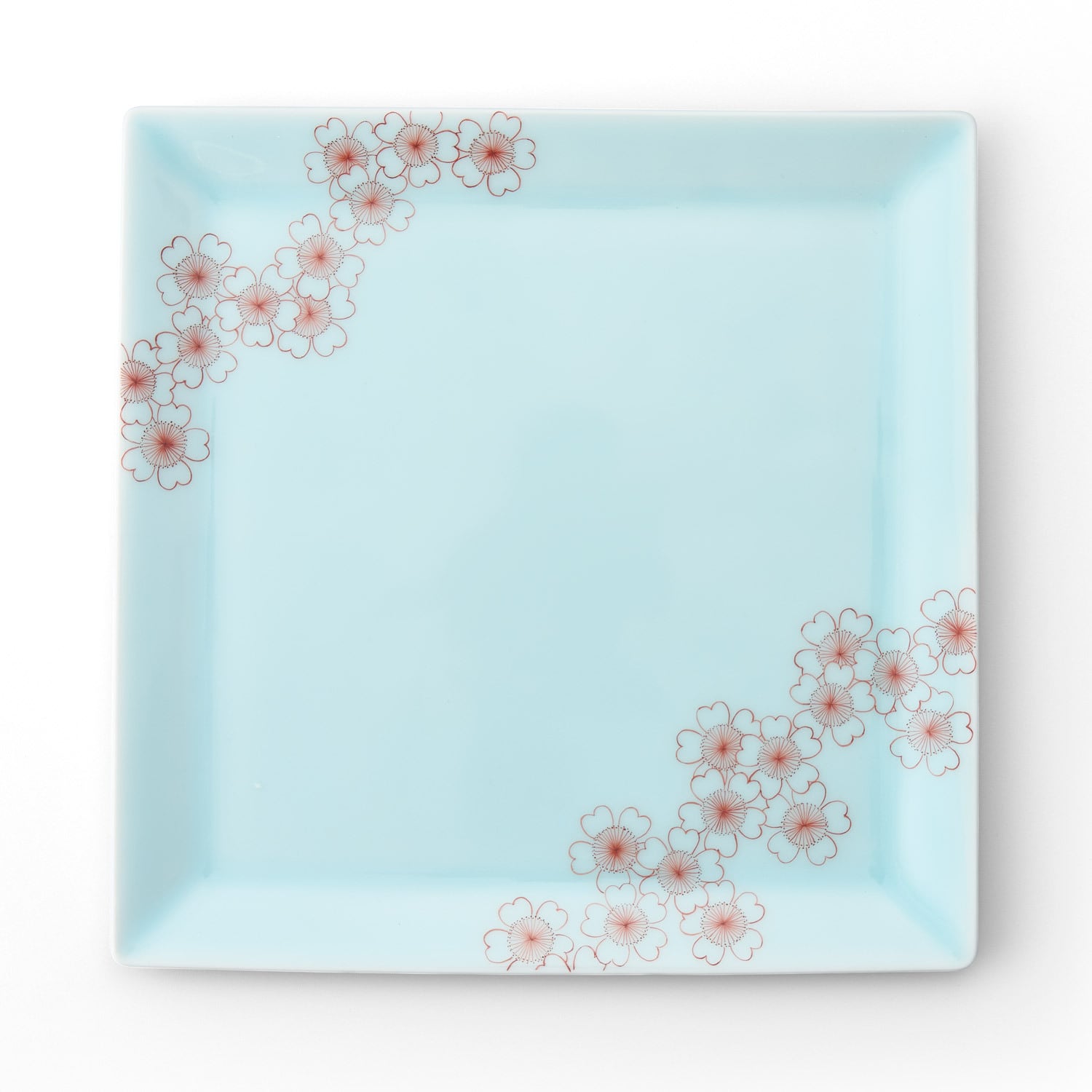 〈福岡大五窯〉青磁桜つなぎ 四角プレート